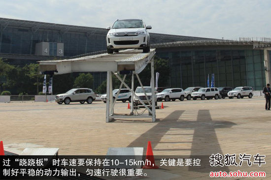 過“蹺蹺板”時車速要保持在10km/h至15km/h,關(guān)鍵是要控制好平穩(wěn)的動力輸出,勻速行駛很重要,當然其次就是考驗駕駛者的心理素質(zhì)。
