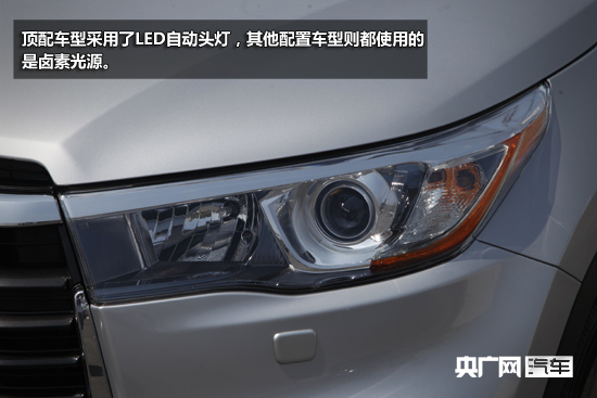 很多人管漢蘭達(dá)叫大漢,但這個(gè)大漢卻又不是粗糙的摳腳大漢,絕對(duì)是經(jīng)過(guò)精心設(shè)計(jì)的。前臉采用了豐田最新的“Keen look”設(shè)計(jì)理念,不管像不像廠(chǎng)家所謂的海鳥(niǎo)展翅造型吧,總的來(lái)講我還是很喜歡的,顯得比上一代年輕了不少。頂配車(chē)型采用了LED自動(dòng)頭燈,其他配置車(chē)型則都使用的是鹵素光源。