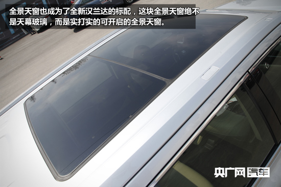 全景天窗也成為了全新漢蘭達(dá)的標(biāo)配,這塊全景天窗絕不是天幕玻璃,而是實(shí)打?qū)嵉目砷_(kāi)啟的全景天窗。