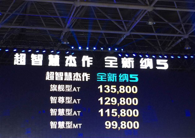 全新納5正式上市 售價(jià)9.98-13.58萬