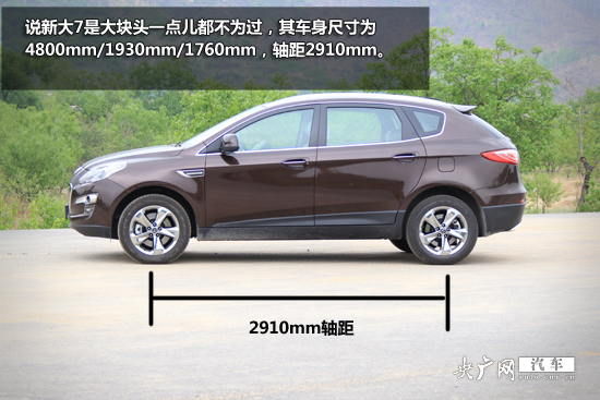 說(shuō)新大7是大塊頭一點(diǎn)兒都不為過(guò),其車身尺寸為4800mm/1930mm/1760mm,軸距2910mm。數(shù)據(jù)上除高度以外都超過(guò)了沃爾沃XC90,逼近奔馳ML級(jí)中大型SUV。而其整備質(zhì)量也達(dá)到 1960千克。