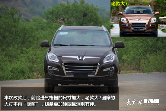 本次改款后,前臉進(jìn)氣格柵的尺寸加大,老款大7圓睜的大燈不再“賣萌”,線條更加硬朗且炯炯有神。同時(shí)前大燈的結(jié)構(gòu)也改進(jìn)為氙氣大燈搭配“L”造型LED日間行車燈,實(shí)際駕駛中,燈光將視行駛環(huán)境自動(dòng)開(kāi)啟關(guān)閉,非常方便。