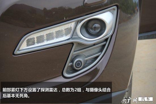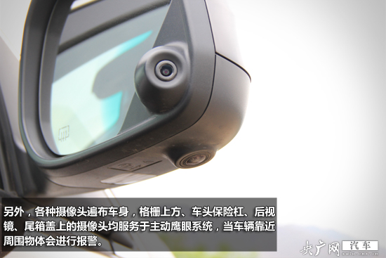 另外,各種攝像頭遍布車身,格柵上方、車頭保險(xiǎn)杠、后視鏡、尾箱蓋上的攝像頭均服務(wù)于主動(dòng)鷹眼系統(tǒng),當(dāng)車輛靠近周圍物體會(huì)進(jìn)行報(bào)警。前部霧燈下方設(shè)置了探測(cè)雷達(dá),總數(shù)為2組,與攝像頭結(jié)合后基本無(wú)死角。