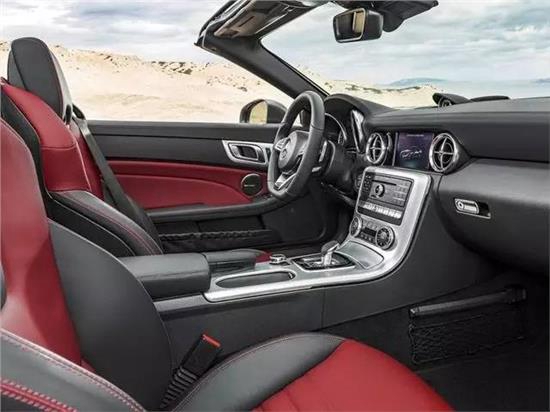 內(nèi)飾部分,奔馳SLC配備了最新的三輻式多功能方向盤(pán),炮筒式儀表盤(pán)、簡(jiǎn)潔但功能豐富的中控區(qū)、中控臺(tái)頂部7英寸的液晶顯示屏、圓形出風(fēng)口等元素看上去并不陌生,是目前奔馳家族式的設(shè)計(jì)風(fēng)格。中控區(qū)采用了拉絲金屬覆蓋并向下延伸至排擋區(qū)域。奔馳SLC并未采用懷擋設(shè)計(jì),布局常規(guī)但造型短小的排擋桿更便于營(yíng)造出色的駕馭感。