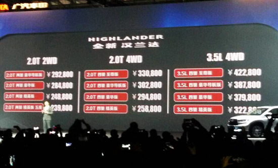 [廣汽豐田漢蘭達(dá)全系車型售價(jià)]
