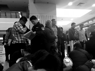 民警對排隊(duì)掛號者進(jìn)行登記。