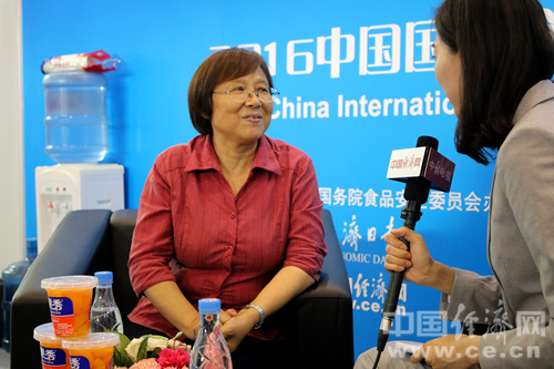 湖南果秀食品(集團(tuán))有限公司董事長陽國秀接受中國經(jīng)濟(jì)網(wǎng)記者采訪。中國經(jīng)濟(jì)網(wǎng) 韓肖攝