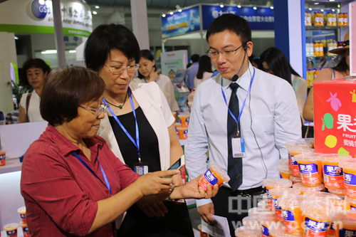 陽國秀向國家食品藥品監(jiān)督管理總局新聞宣傳司司長顏江瑛(中)介紹果秀2小時追溯體系。中國經(jīng)濟(jì)網(wǎng) 韓肖攝