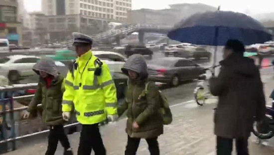 1月9日清晨7點(diǎn)左右,當(dāng)許多人在還暖室迎接2019年的第一場(chǎng)雪,一條暖心的微視頻在微博和朋友圈迅速轉(zhuǎn)發(fā)、傳播。畫(huà)面中雪天風(fēng)寒,一位執(zhí)勤交警將兩位小學(xué)生送過(guò)積雪成冰的緩坡,正打算轉(zhuǎn)身離去投入交通早高峰的疏導(dǎo)時(shí),孩子們自發(fā)地向這位“暖心”交警敬禮。