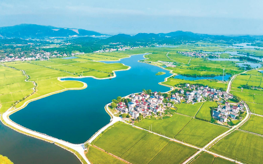 9月6日,蕪湖市繁昌區(qū)平鋪鎮(zhèn)郭仁村,新平灌區(qū)內(nèi)碧綠的稻田與村莊、道路、水系等交相輝映,勾勒出一幅美麗的鄉(xiāng)村田園畫卷。