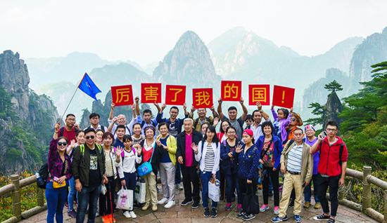 ▲ 10月1日,黃山風(fēng)景區(qū)正式拉開今年“十一”黃金周大幕。圖為中外游客在景區(qū)游玩、拍照。潘成攝
