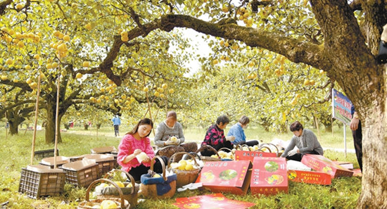 “梨子壓枝鋪短墻”。梨鄉(xiāng)秋色就是一幅美麗的豐收景。