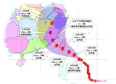 9號臺風“納沙”路徑預報圖(7月28日08時—8月1日08時)