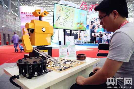 央廣網(wǎng)安徽頻道5月17日消息(記者 張宣劍)5月17日上午,第十屆中博會(huì)主展館開門迎客,在主展館內(nèi)湖南館的圍棋機(jī)器人“小智”吸引了眾多的愛好圍棋的中老年朋友,很多圍棋愛好者躍躍欲試,想與“小智”一決高下。