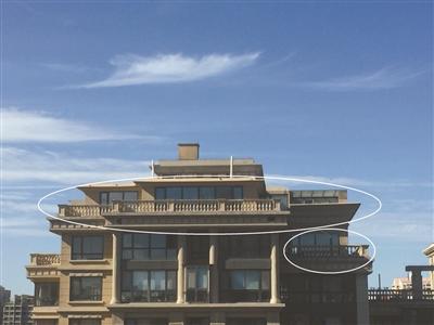 北青報(bào)記者在現(xiàn)場(chǎng)看到,違建所在小區(qū)為一處高檔社區(qū),如果不仔細(xì)觀察,很難看出18層樓頂?shù)倪`建。在對(duì)面樓上,可以看到此處違建不論風(fēng)格還是顏色都盡量保持與原樓相似,趙淼說:“這也是一種障眼法!