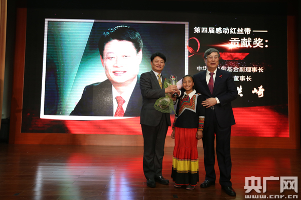活動上還頒發(fā)了第四屆“感動紅絲帶”獎(jiǎng)。中國民生銀行董事長洪崎榮獲“感動紅絲帶---貢獻(xiàn)獎(jiǎng)”,他領(lǐng)導(dǎo)的中國民生銀行全體干部職工積極參與防艾工作,著力解決受艾滋病影響貧困落后地區(qū)的教育、醫(yī)療衛(wèi)生困難,2015年9月,其捐建的涼山州美姑縣民生銀行紅絲帶愛心學(xué)校正式竣工,首批接納了當(dāng)?shù)?00名特殊困難兒童入學(xué);沙瑪阿果榮獲“感動紅絲帶---愛心獎(jiǎng)”,自2010年加入紅絲帶事業(yè)以來,她便為推動大涼山防艾事業(yè)四處奔走,發(fā)揮自身影響力為紅絲帶工作宣傳、籌款,牽頭打造追蹤艾滋病母嬰阻斷過程的紀(jì)錄片,感動了眾多社會愛心人士;湖北省隨州市電力公司“紅絲帶黨員服務(wù)隊(duì)”榮獲“感動紅絲帶---溫暖獎(jiǎng)”,在2001年國人對艾滋病“談艾色變”的時(shí)候,均川鎮(zhèn)供電所的17名共產(chǎn)黨員毅然決定留守艾滋病疫情最重的鄉(xiāng)村,為他們進(jìn)行電網(wǎng)改造,幫助他們克服困難,如今紅絲帶黨員服務(wù)隊(duì)的規(guī)模已經(jīng)擴(kuò)大到800人,他們十四年如一日的幫助受艾滋病影響家庭,提高他們的生產(chǎn)生活水平,資助感染者家庭培養(yǎng)出了4名大學(xué)生,幫助20多名艾滋孤兒完成了初中、高中等學(xué)業(yè),資助了100多個(gè)艾滋病家庭50余萬元;彩虹中國創(chuàng)始人張錦雄榮獲“感動紅絲帶---自強(qiáng)獎(jiǎng)”,他在20歲時(shí)候發(fā)現(xiàn)感染了艾滋病,迄今為止已與艾共生20年,他自信、樂觀,主動公開自己的感染身份,并從1997年開始在艾滋病防治機(jī)構(gòu)做義工,2008創(chuàng)辦獨(dú)立的公益組織,迄今在全國40多個(gè)地區(qū)的60多所高校舉辦一百多場公益講座。