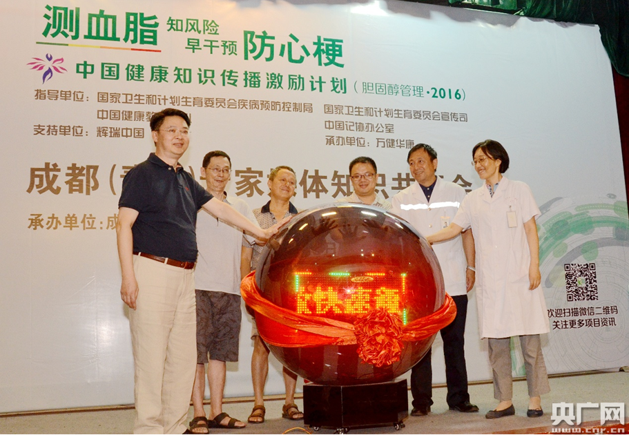 央廣網(wǎng)成都8月24日消息(記者馮會(huì)玲)由國(guó)家衛(wèi)生計(jì)生委和中國(guó)記協(xié)聯(lián)合發(fā)起、輝瑞中國(guó)支持的“中國(guó)健康知識(shí)傳播激勵(lì)計(jì)劃(膽固醇管理?2016)”知識(shí)共享會(huì)來到成都青羊,本次青羊知識(shí)共享會(huì)的主題為“測(cè)血脂,防心梗,快急救”,由成都市青羊區(qū)人民政府承辦、成都市第三人民醫(yī)院協(xié)辦。這是該主題活動(dòng)第三次走進(jìn)成都,以“膽固醇管理”為核心內(nèi)容,呼吁全社會(huì)行動(dòng)起來,管好膽固醇,加強(qiáng)“防、治、救”工作,保護(hù)血管健康。