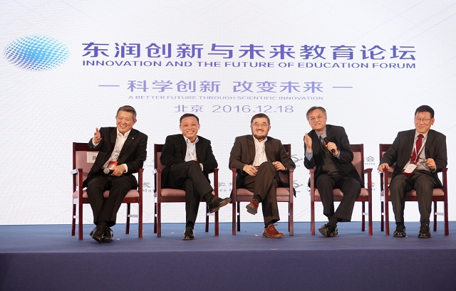 央廣網(wǎng)北京12月19日消息(記者王舒)2016年12月18日,一場跨國界、跨學(xué)科、跨年齡的尖峰科學(xué)對話盛宴在北京清華大學(xué)開啟,清華大學(xué)和東潤公益基金會共同舉辦首屆東潤創(chuàng)新與未來教育論壇。論壇邀請了諾貝爾物理學(xué)獎獲獎?wù)邨钫駥,諾貝爾經(jīng)濟學(xué)獎得主Eric Maskin,菲爾茲獎得主、哈佛大學(xué)終身教授、美國科學(xué)院院士丘成桐、清華大學(xué)黨委書記陳旭,以及國內(nèi)外知名專家學(xué)者、企業(yè)家代表,共同探討“科學(xué)創(chuàng)新 改變未來”的命題。