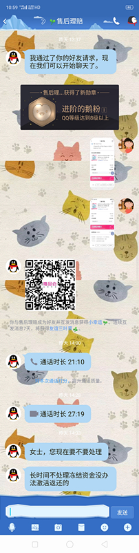 騙子用QQ以售后理賠為名進行聯(lián)絡(luò)