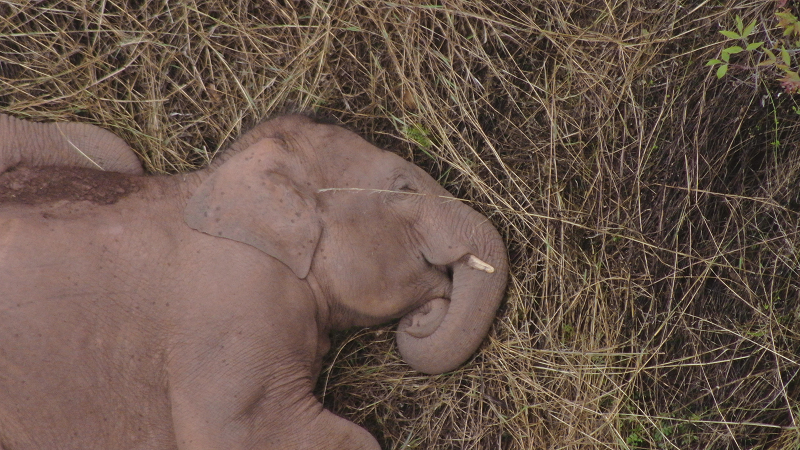 6月7日9時27分,云南省森林消防總隊無人機監(jiān)測任務(wù)分隊監(jiān)測顯示,亞洲象群在晉寧區(qū)夕陽鄉(xiāng)賴家新村山林地里睡覺休息(央廣網(wǎng)發(fā) 云南省森林消防總隊供圖)