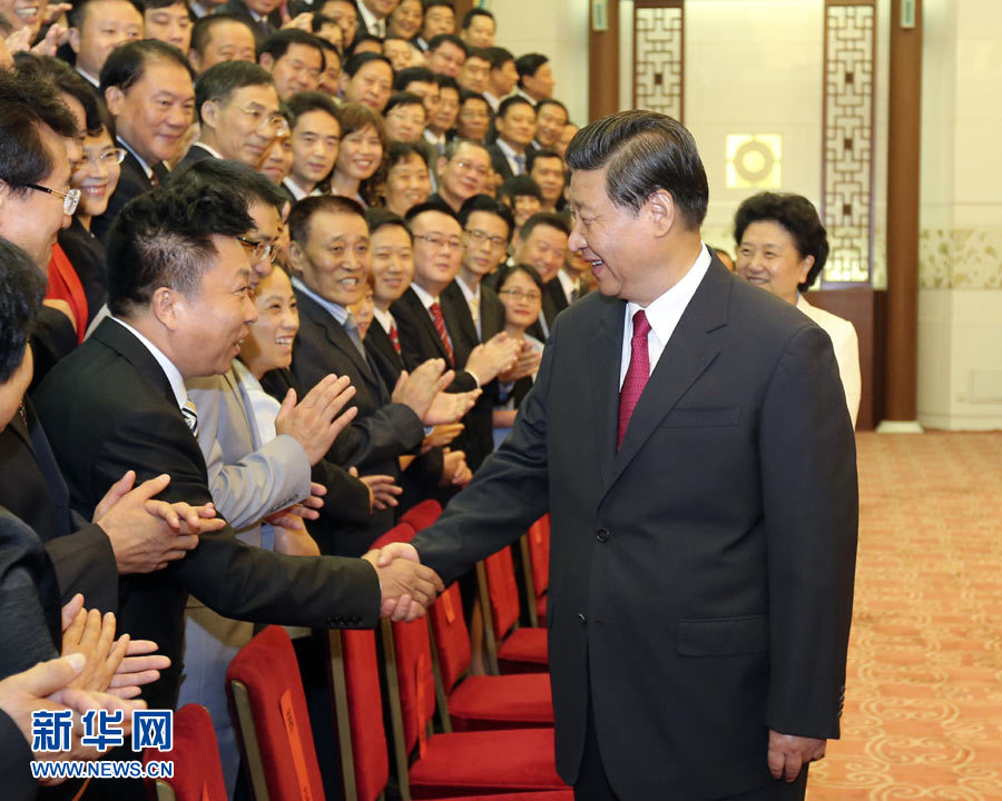 上午9時30分許,習近平等領導同志走進人民大會堂河北廳,來到代表們中間,同大家親切握手,詢問他們工作和生活情況,并同大家合影留念。