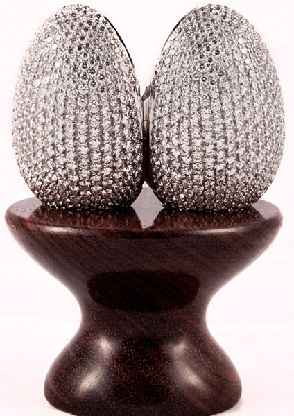 這款奢華的“彩蛋”從外觀來看銀光閃閃,做工十分精致,大小相當于一顆吉百利糖心巧克力蛋。其外部共鑲有910顆鉆石,里面看起來像個小盒子,可放置兩張照片。如果顧客想要紅寶石或藍寶石彩蛋,也可以在該網(wǎng)站定做,僅2個半月就可以制作出來。