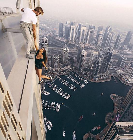 近日,俄羅斯網(wǎng)紅維姬為尋找最美拍照角度,爬上了迪拜的卡延塔(世界上最高的摩天大樓之一,外觀呈90度扭曲旋轉),并在不佩戴任何安全裝置的情況下,只借助男同伴以手拉拽便將身體探出塔外1004英尺(約為306米)的高空中,此舉引起網(wǎng)友熱議。