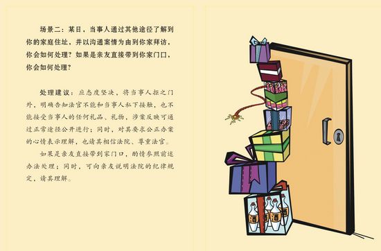 最近,浙江省法院的每位干警都收到了一本“拒腐”手冊,手冊模擬了24種法官在辦案中可能遇到的送禮、請托的場景,并給出了處理建議:收到老鄉(xiāng)送的土特產(chǎn),可回贈一定的土特產(chǎn)或禮品;飯局遇到當事人應(yīng)設(shè)法借故離開等等。手冊還配以各種通俗易懂的反腐倡廉漫畫作為補白。浙江省高院院長齊奇表示,面對說情送禮,法官冷冰冰、硬邦邦地簡單拒絕可能導致與親朋好友斷絕往來。因此,要柔性處理,藝術(shù)拒絕。