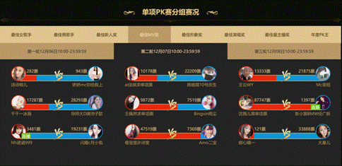 2016年11月25日上午10點(diǎn),2016酷狗直播繁星音樂盛典總決選正式開啟。短短半個(gè)月的時(shí)間過去,現(xiàn)在已經(jīng)到了最為殘酷的淘汰賽環(huán)節(jié)。相信剛剛結(jié)束的海選資格賽和晉級(jí)賽已經(jīng)讓大家認(rèn)識(shí)到盛典總決選有多么激烈而殘酷了。在晉級(jí)賽中,選手的最高支持票數(shù)達(dá)到70多萬,而在單項(xiàng)獎(jiǎng)PK賽程中,有些選手因幾票之差無緣接下來的淘汰賽,讓人唏噓不已。