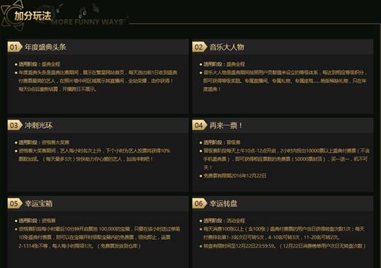 本次大賽設(shè)置了“沖刺光環(huán)”得票加成等六項(xiàng)加分玩法,大大加強(qiáng)了藝人與用戶的互動(dòng)性,藝人想要突圍而出,除了本身了不起的才藝展示之外,背后粉絲的支持亦是關(guān)鍵。能霸占年度盛典席位的藝人,必定是憑借個(gè)人魅力,在層層突圍賽中獲得千萬粉絲的力捧,公平、公開地?fù)魯?duì)手?梢哉f,得獎(jiǎng)的藝人都是粉絲們一路“捧出來”的。