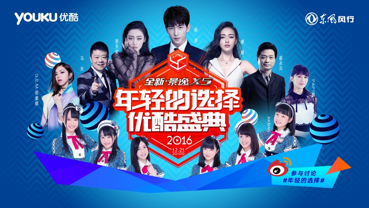 12月21日,“年輕的選擇”2016優(yōu)酷盛典將舉行,李宇春、楊洋、周冬雨、張?zhí)鞇、AKB48、華晨宇、G.E.M.鄧紫棋、吳磊、白敬亭、黃景瑜等娛樂圈的流量和話題擔當明星齊聚,堪稱年度最強娛樂盛事!