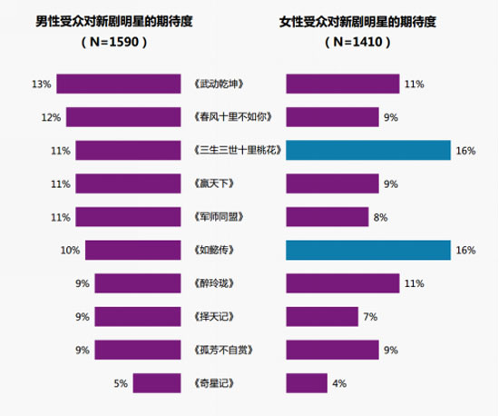 與傳統(tǒng)的觀劇認(rèn)知不同,型男鮮肉們即將進(jìn)入“紙巾常備”的觀劇模式。雖然明年優(yōu)酷獨(dú)播劇《武動(dòng)乾坤》成為年輕男性最受期待的電視劇,但《春風(fēng)十里不如你》卻以極小的差距位列第二,開啟追劇的反差萌時(shí)代。