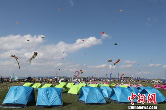 記者注意到,在風(fēng)箏表演場(chǎng)地的一旁,一排排整齊的綠色帳篷同樣吸引著觀眾的眼球。原來(lái),此次風(fēng)箏大賽不僅融入了民族傳統(tǒng)節(jié)日,更是與戶外運(yùn)動(dòng)完美結(jié)合。