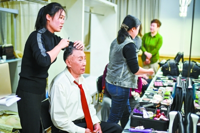有人在舞臺上開心地接受觀眾如潮般的掌聲,也有人滿懷遺憾地離開。著名梅派表演藝術(shù)家李玉芙,特別看重這次演出。但80歲的她因為教學(xué)工作太累,這幾天失聲了。為了參加演出她昨天就去醫(yī)院打了激素針,因為沒有見效,演出前兩小時又打了一次針。直到演出開始了,她還在后臺跟琴師合練,做最后的努力。最終還是因為嗓子實(shí)在沒法兒堅持,只能在眾人的勸說下,滿懷歉意離開了劇場。