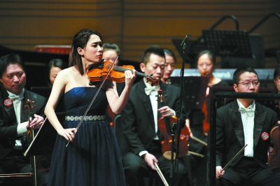 經(jīng)過了昆明聶耳交響樂團(tuán)、中國愛樂樂團(tuán)、北京交響樂團(tuán)、中國交響樂團(tuán)的演奏后,馬拉松的上半程即將收尾,而在這時(shí),演出意外地迎來了一個(gè)小高潮。今年,為了鼓勵(lì)更多青年藝術(shù)家的創(chuàng)作,國際音樂節(jié)設(shè)立了“青年音樂家獎(jiǎng)——雀巢杯”。在昨天的交響馬拉松上,這個(gè)獎(jiǎng)項(xiàng)公開了首位獲獎(jiǎng)?wù)摺嗄晷√崆偌伊Q。上臺(tái)領(lǐng)獎(jiǎng)時(shí),身穿一襲寶藍(lán)色長裙的柳鳴說著說著便激動(dòng)地哭了起來。“對(duì)不起,我真的太愛哭了!边@個(gè)率真坦誠的姑娘一邊抹著眼淚,一邊說著感謝的致辭,觀眾們用善意的掌聲來鼓勵(lì)她,站在她身邊的余隆也忍不住笑著出言安慰。短暫的休息后,柳鳴再度上臺(tái),與上海交響樂團(tuán)合作了《梁祝》和馬克思·布魯赫的《G小調(diào)第一小提琴協(xié)奏曲》。此時(shí)的柳鳴完全沒有了剛才哭成淚人兒的孩子模樣,她全情投入,技巧嫻熟,尤其在演奏《梁!窌r(shí),柳鳴的詮釋帶著女孩特有的敏感和細(xì)膩。而《梁!纷鳛橐恢дQ生在上海的樂曲,在上交的演繹下,也充滿了另外一種別樣的婉轉(zhuǎn)風(fēng)情。