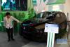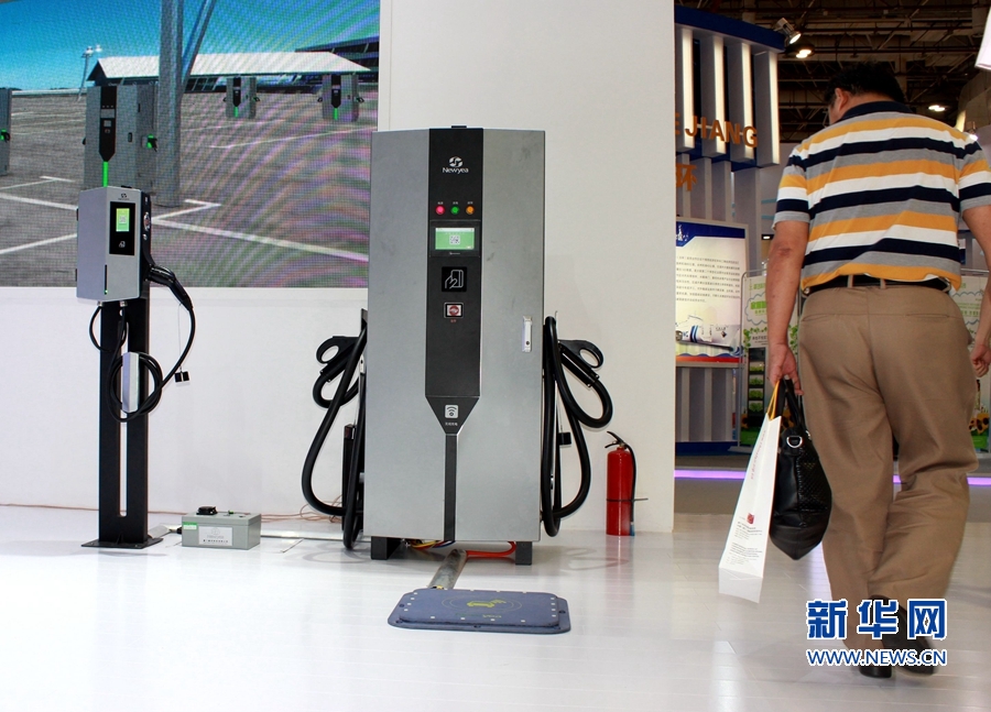 新能源汽車(chē)無(wú)線(xiàn)充電技術(shù)吸引一位路人的目光。新華網(wǎng) 劉默涵 攝 -