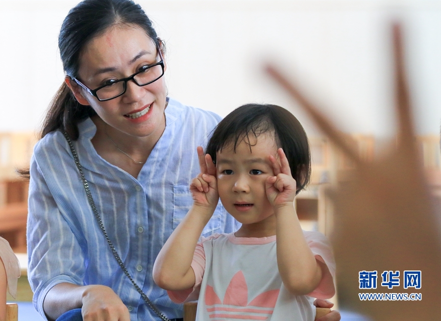 剪刀手或許不是孩子學(xué)會的第一個手勢,但在開園第一天,互動游戲中孩子怯生生地擺出手勢,已經(jīng)是很大的進步。融入新環(huán)境,開始新生活。新華網(wǎng) 肖和勇 攝 -