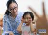 一名小女孩在媽媽的鼓勵下參加互動游戲。新華網(wǎng) 肖和勇 攝 -