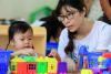 換個新環(huán)境,照樣有玩具、有陪伴。4日,一名家長陪伴孩子在幼兒園里玩耍。新華網(wǎng) 肖和勇 攝 -