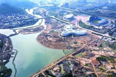 ▲ 福州最大的人工湖項(xiàng)目——閩侯旗山湖正在加快建設(shè),一期有望在今年內(nèi)建成開放。 林熙 攝
