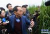 10月16日,袁隆平院士在湖南長沙縣金井鎮(zhèn)的“巨型稻”試驗田邊接受記者采訪。水稻長得比人高、畝產可達800千克以上--中國科學院亞熱帶農業(yè)生態(tài)研究所10月16日正式發(fā)布一種水稻新種質,株高可達2.2米,具有高產、抗倒伏、抗病蟲害、耐淹澇等特點,被認為開啟了水稻研制的一扇新門。新華社記者李尕攝 -