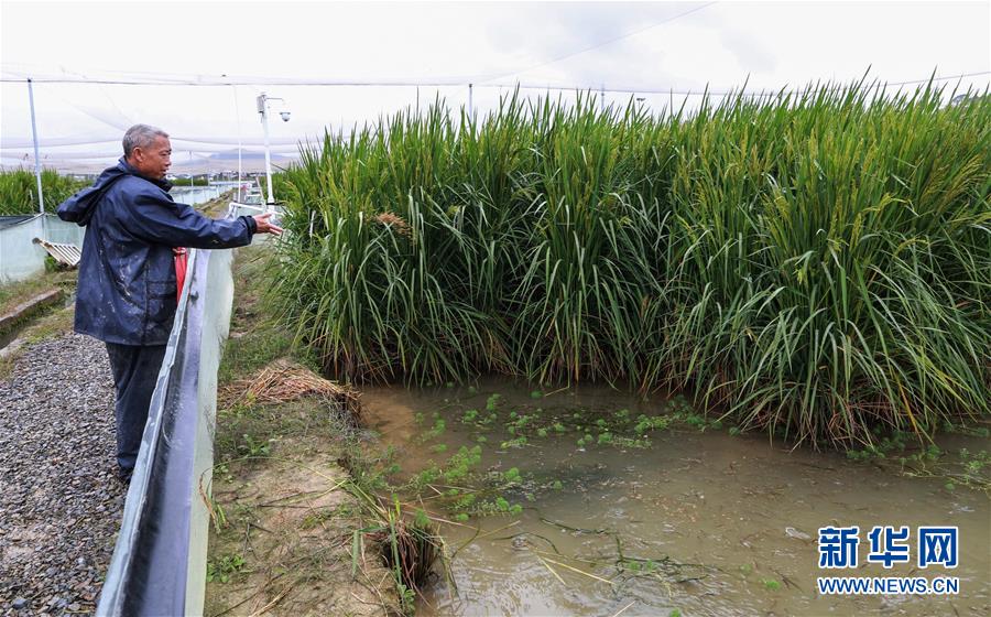 10月16日,在位于湖南長沙縣金井鎮(zhèn)的“巨型稻”試驗田,中國科學院亞熱帶農業(yè)生態(tài)研究所研究員夏新界在查看水稻生長情況。水稻長得比人高、畝產可達800千克以上--中國科學院亞熱帶農業(yè)生態(tài)研究所10月16日正式發(fā)布一種水稻新種質,株高可達2.2米,具有高產、抗倒伏、抗病蟲害、耐淹澇等特點,被認為開啟了水稻研制的一扇新門。新華社記者李尕攝