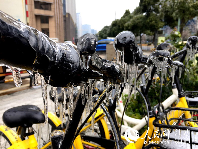 人民網(wǎng)南昌1月28日電(時雨)連日來,南昌遭遇低溫凍雨天氣,夜間的溫度跌至0℃以下。28日,本網(wǎng)在南昌街頭看到,低溫加凍雨使戶外的物體裹上了厚厚的“冰衣裳”,散落在街頭的各類共享單車不少已經(jīng)成為“冰雕”,車把手、車筐甚至車輪胎都結(jié)了冰,這些被“冰封”的共享單車停靠在路邊無人問津。 -