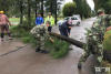 江門(mén)市公安邊防官兵與交警部門(mén)在崖門(mén)鎮(zhèn)緊急清理被吹倒的樹(shù)木 -