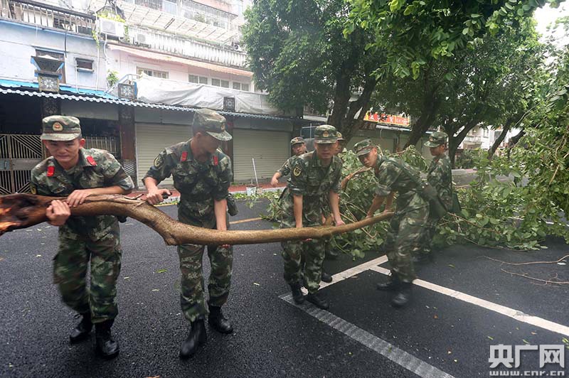 央廣網(wǎng)廣州8月23日消息(記者鄭澍 官文清 通訊員廖鍵 汪雨 朱涵 龍宇翔 樊鼎 陳浩棋 張煥燃 陸才興 李建帆 趙雷)來(lái)自中央氣象臺(tái)的消息顯示,今年第13號(hào)臺(tái)風(fēng)“天鴿”(強(qiáng)臺(tái)風(fēng)級(jí))的中心已于今天(23日)中午12點(diǎn)50分前后在廣東珠海南部沿海登陸,登陸時(shí)中心附近最大風(fēng)力有14級(jí)(45米/秒),950百帕,中國(guó)氣象局專家稱這是今年以來(lái)登陸我國(guó)的最強(qiáng)臺(tái)風(fēng)。為抵御臺(tái)風(fēng),降低災(zāi)情對(duì)群眾的影響,廣東邊防總隊(duì)啟動(dòng)應(yīng)急機(jī)制,多地邊防支隊(duì)迅速行動(dòng),投入到抗災(zāi)救災(zāi)活動(dòng)中。圖為東莞邊防官兵正在開(kāi)展救援。 -
