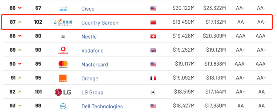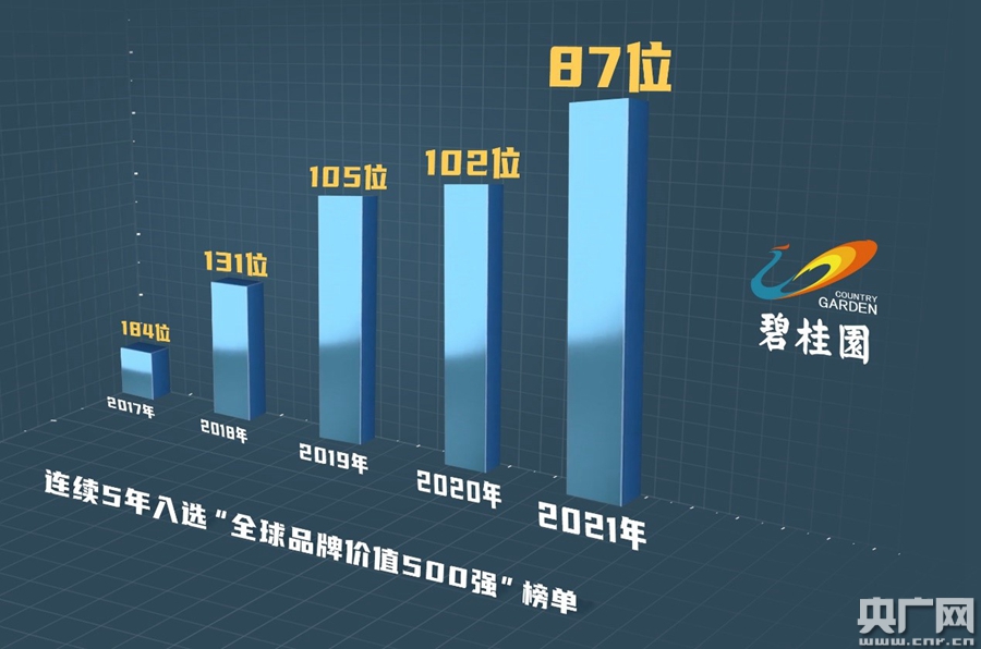 近日,英國(guó)知名品牌價(jià)值咨詢公司Brand Finance發(fā)布“2021年全球品牌價(jià)值500強(qiáng)”榜單,碧桂園集團(tuán)排名自2017年以來(lái)實(shí)現(xiàn)“五連跳”,持續(xù)攀升至第87位,首次躋身前100位。
