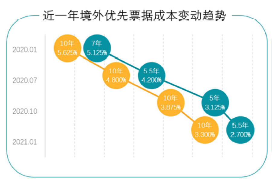 報告期末,碧桂園的平均融資成本為5.56%,較2019年底下降78個基點。2021年1月發(fā)行的5億美元5.5年期票據(jù)和7億美元10年期票據(jù)的利率更是分別為2.7%、3.3%,創(chuàng)民營房企發(fā)債融資成本之新低。在行業(yè)整體融資趨緊的背景下,碧桂園以超低成本發(fā)債融資,充分顯示集團(tuán)穩(wěn)健的財務(wù)盤面在資本市場上擁有的競爭實力。