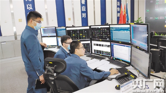 工作人員對(duì)牛山變電站進(jìn)行啟動(dòng)前的調(diào)試。(央廣網(wǎng)發(fā))