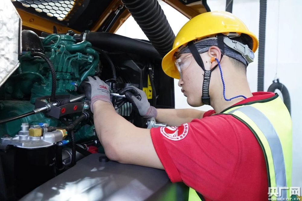 圖為參加第一屆全國技能大賽重型車輛維修項(xiàng)目選手廖明旺正在訓(xùn)練。(央廣網(wǎng)記者 官文清 攝)