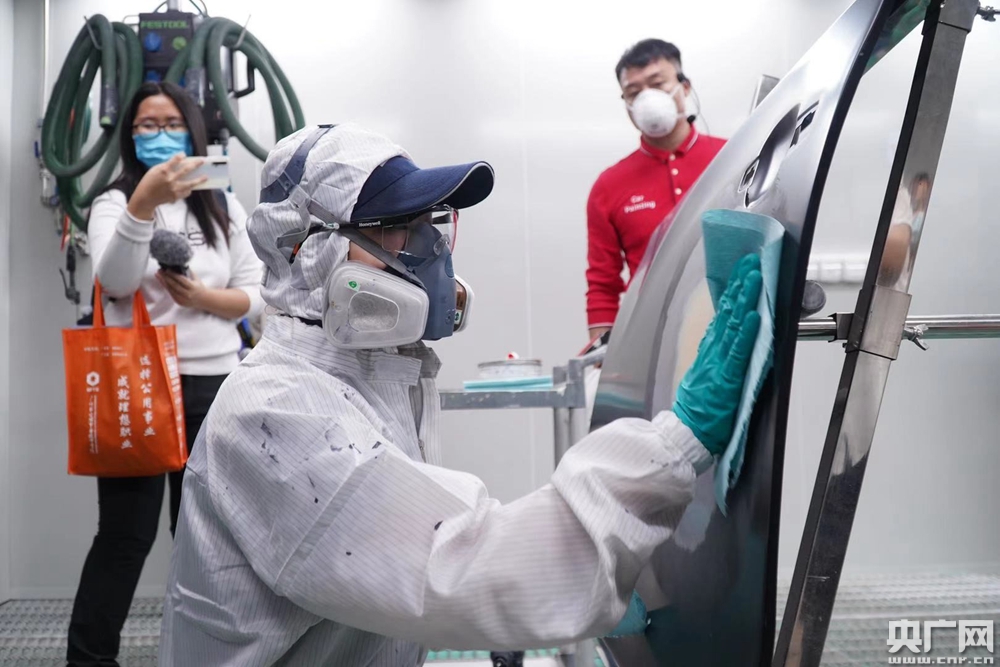 圖為參加第一屆全國技能大賽汽車噴漆項(xiàng)目選手朱惠珊正在練習(xí)。(央廣網(wǎng)記者 官文清 攝)